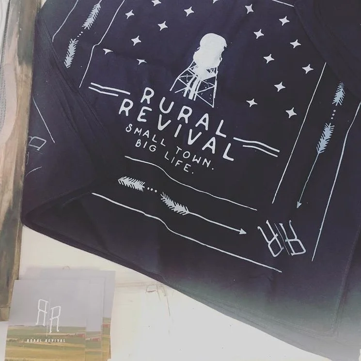 This bandana is a staple for every ruralist’s wardrobe. It features an iconic water tower image, the Rural Revival logo, and “Small Town, Big Life” printed in white on a classic navy cotton bandana. Designed by Spark Seven and made in the USA.